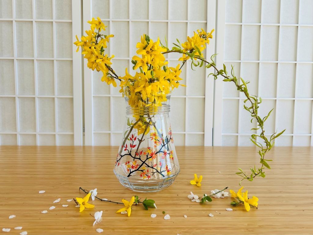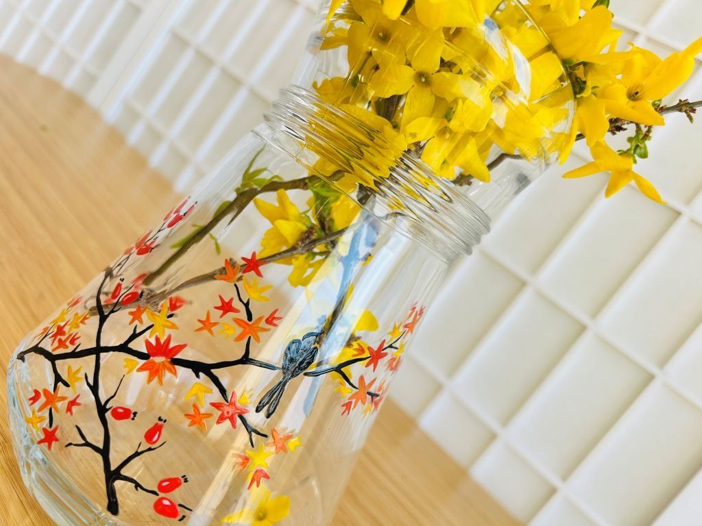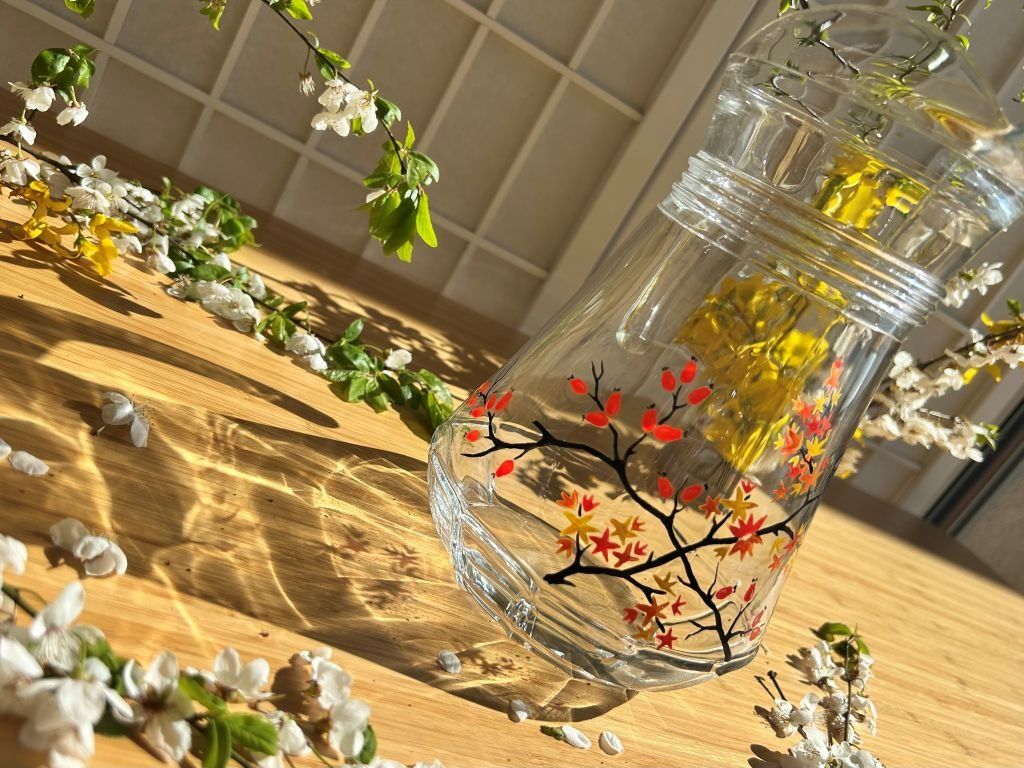 - na skleněný džbán jsem namalovala šípkový keř a podzimní japonský javor