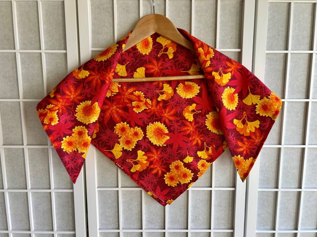 Střední šátek plný kvetoucích chryzantém, javorových listů, listů stromu ginkgo a pavoučí lilií