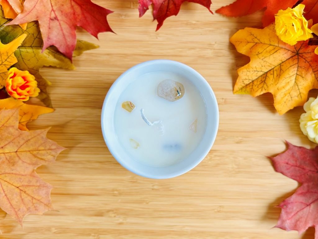 Svíčka v porcelánovém pohárku s Kalciferem doplněnou minerály