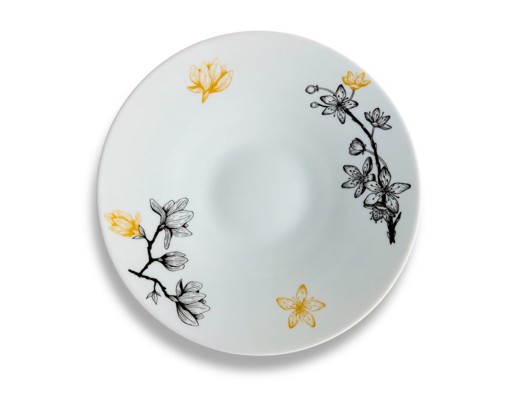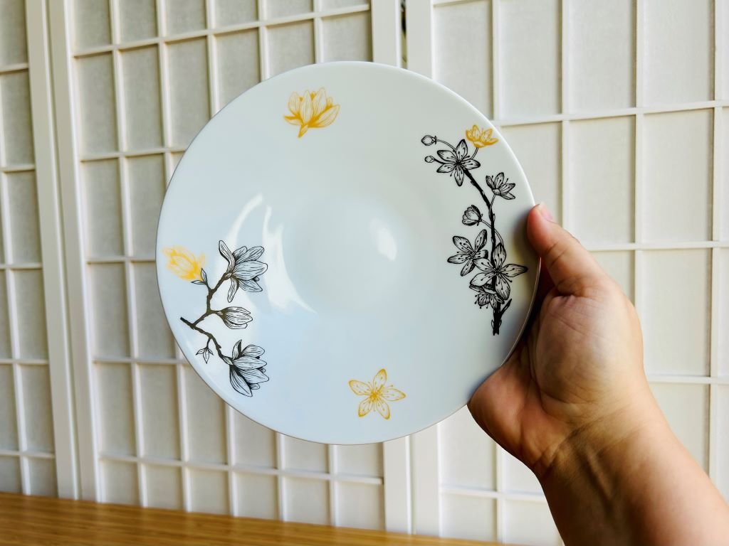 - porcelánový mělký talíř ozdobený reprodukcí mých perokreseb sakur a magnolií