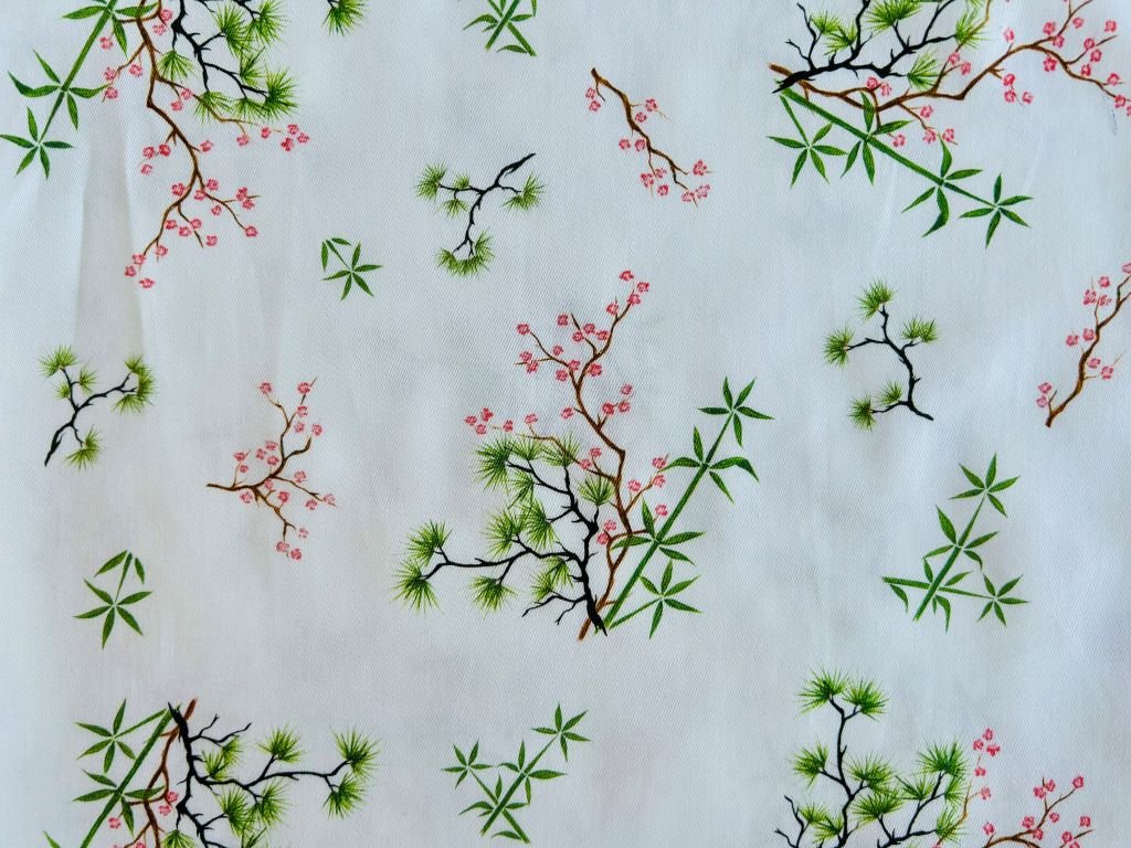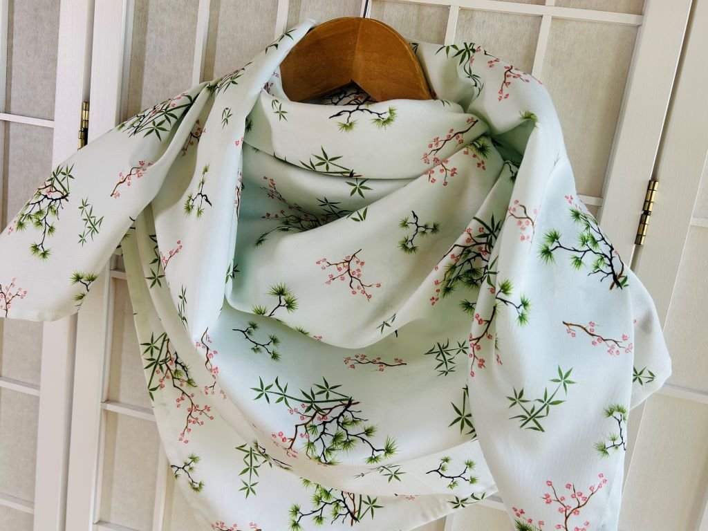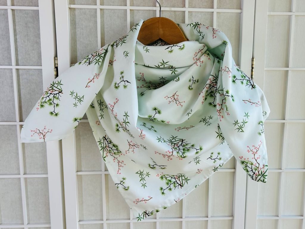 Velký šátek s bambusem, borovicí a slivoní nebo-li Třemi přáteli zimy, 100x100 cm